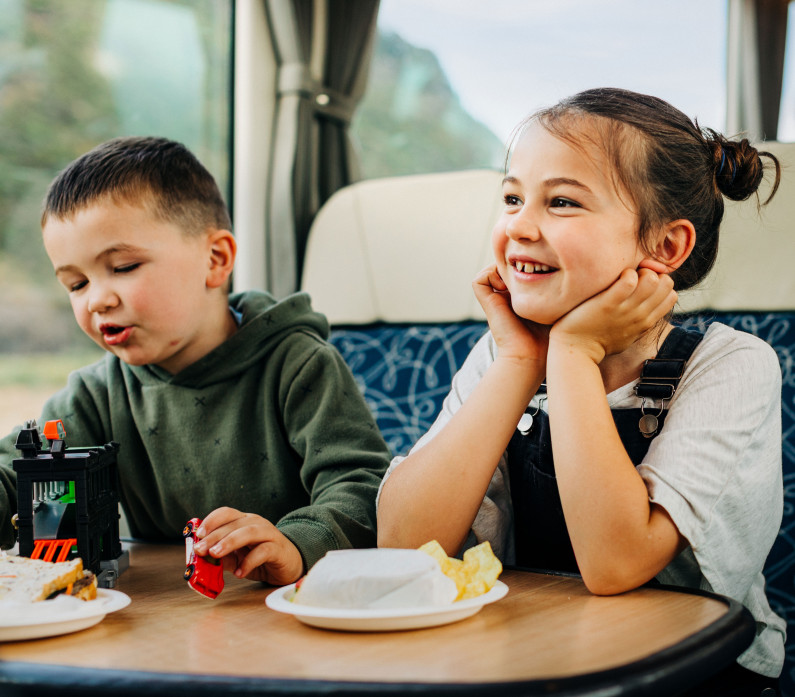 The TranzAlpine train is a convenient, safe way to travel with kids. But the train does move as it curves around bends and corners, so if you’ve got young ones with you, it’s important to pay close attention to their whereabouts.